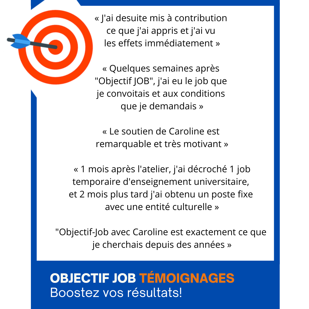 Si vous vous sentez concerné.e dans une certaine mesure par ce constat, n'hésitez pas à me rejoindre pour cet atelier gratuit où je partagerai des points clefs pour créer une "stratégie-emploi" en 5 étapes qui vous permettra d'être plus efficace et pertinent.e dans vos démarches ainsi que quelques conseils pour vous sentir légitime et obtenir ainsi l'attention que vous méritez.